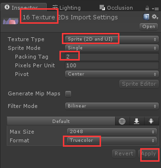将Sprite Packer的设置如下