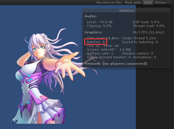 最后再播放看下,Batches只剩下1个啦!!!