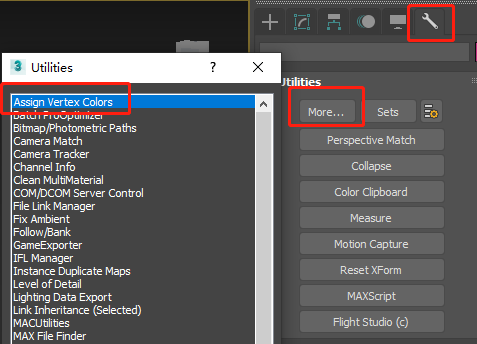 4、在工具面板中选择 指定顶点色(Assign Vertex Colors)
